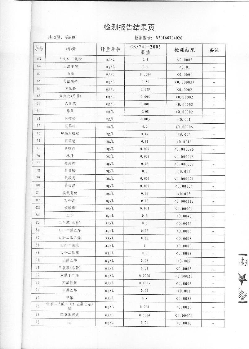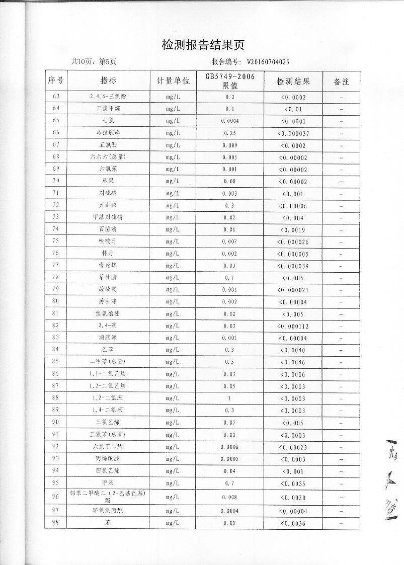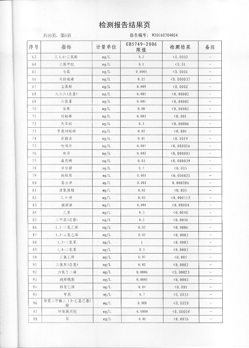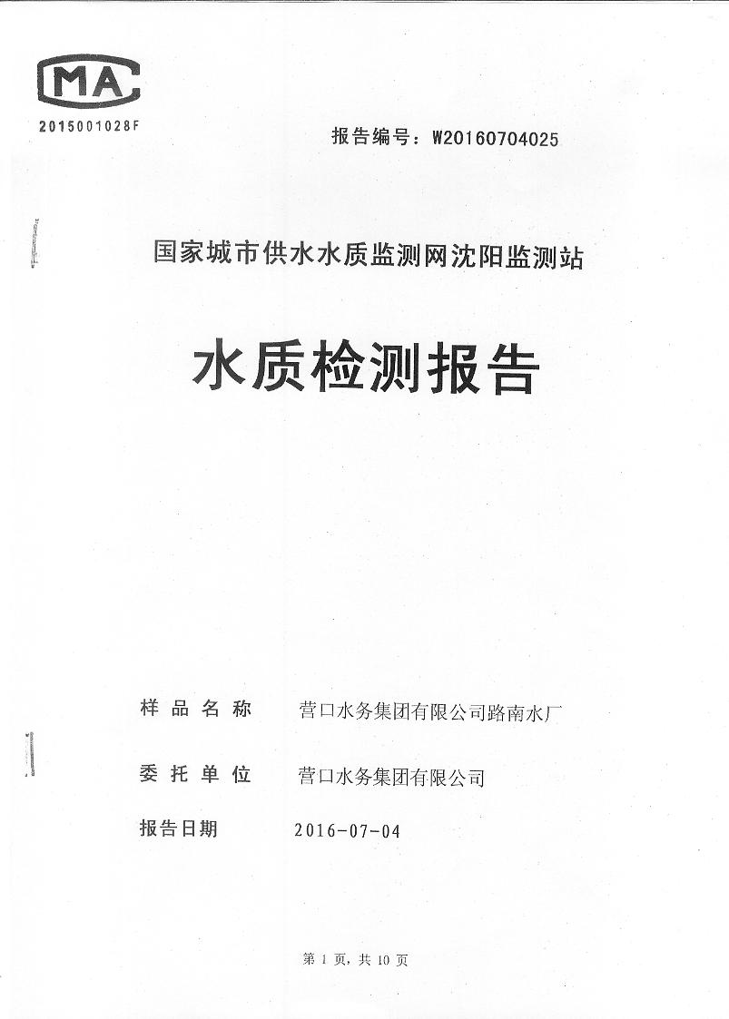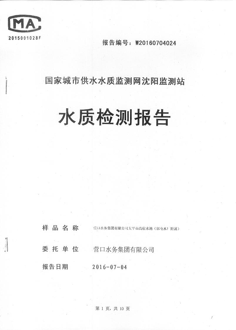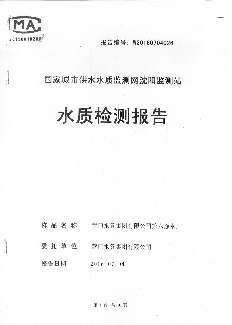 2016年7月份水質(zhì)檢測報(bào)告