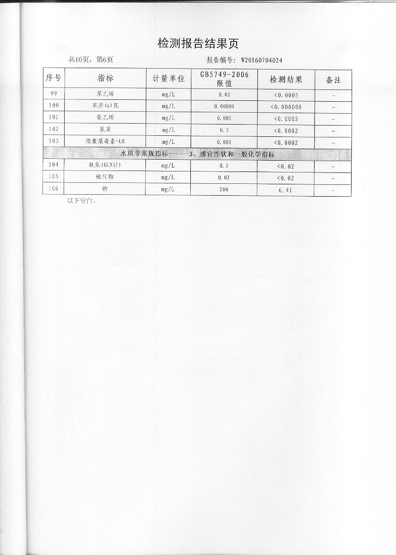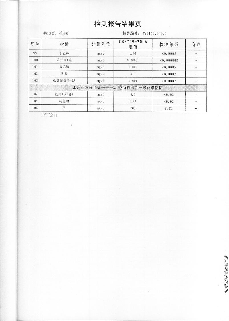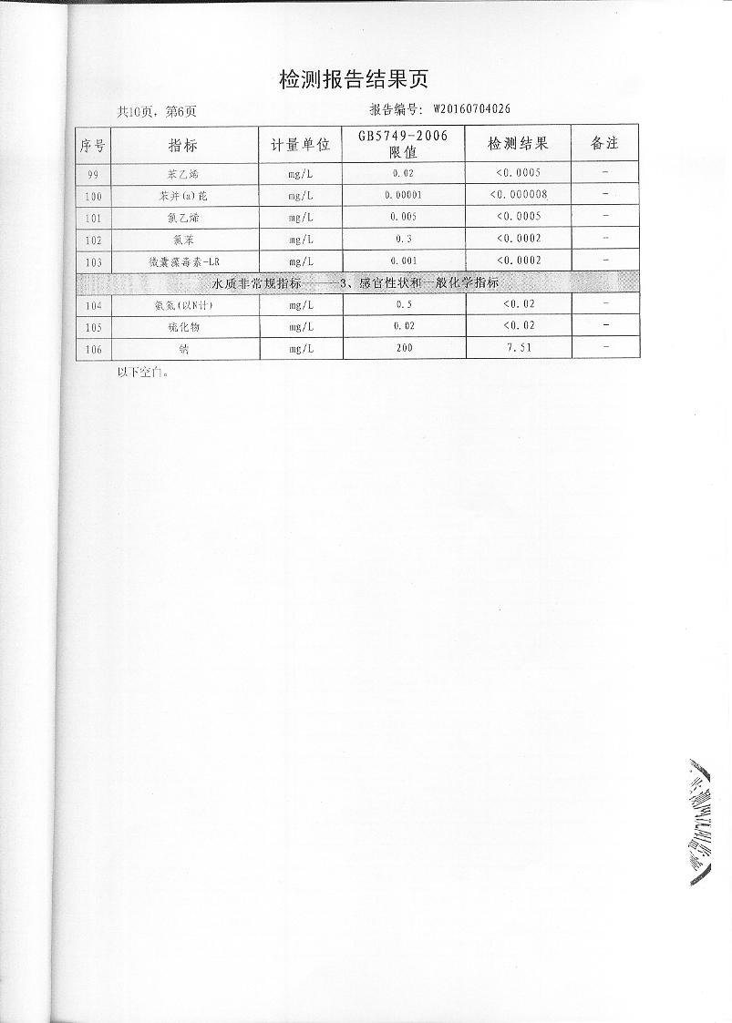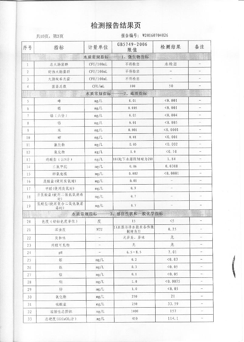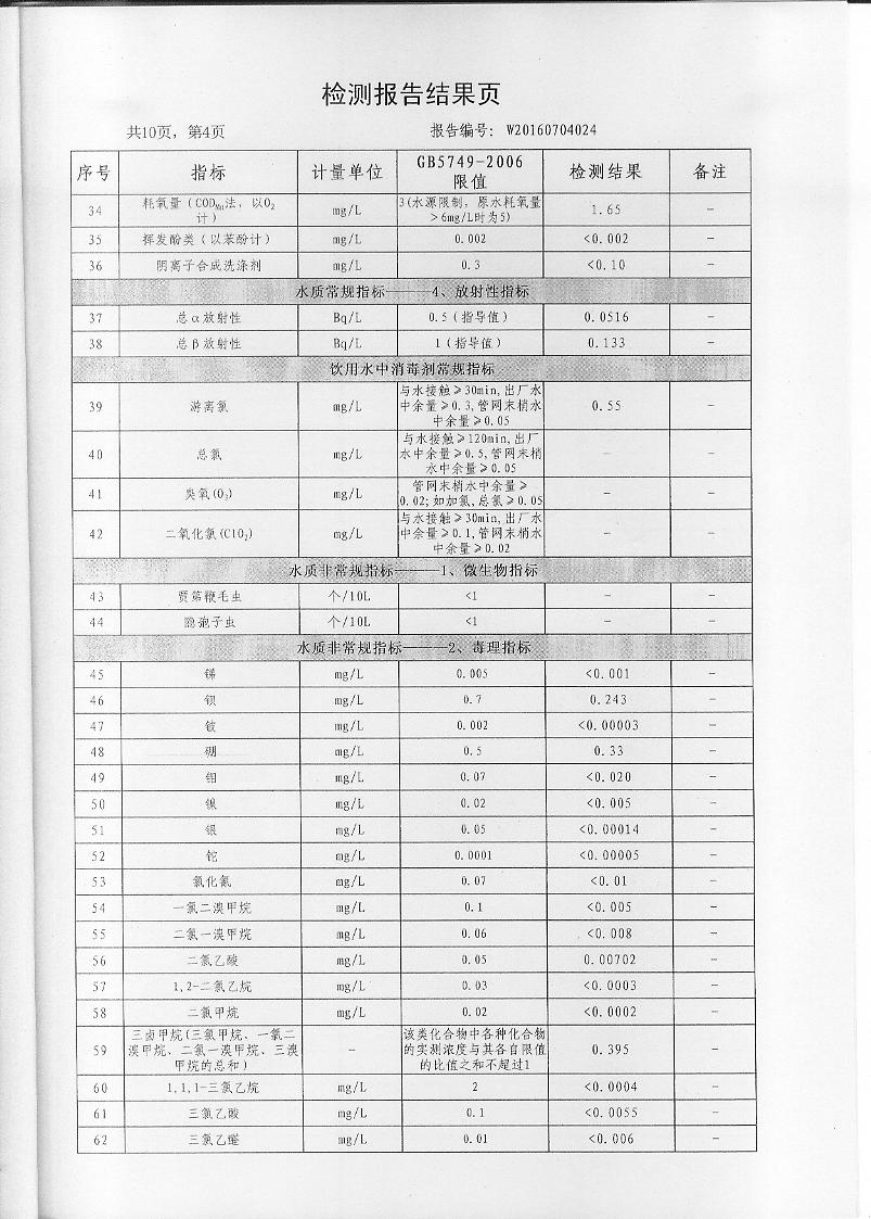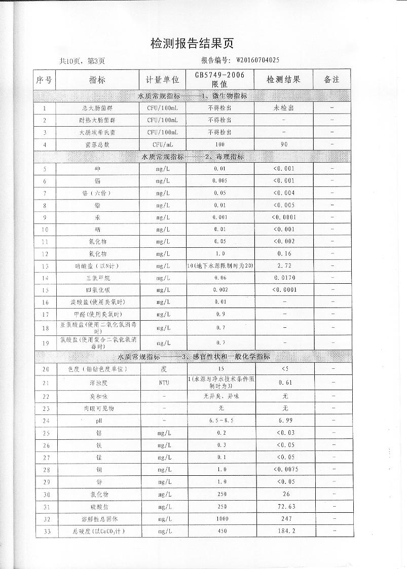 2016年7月份水質(zhì)檢測報(bào)告