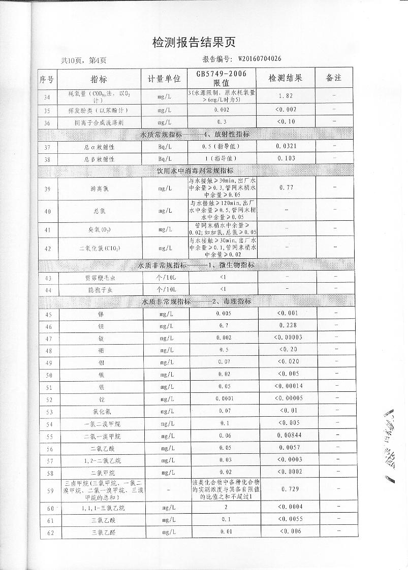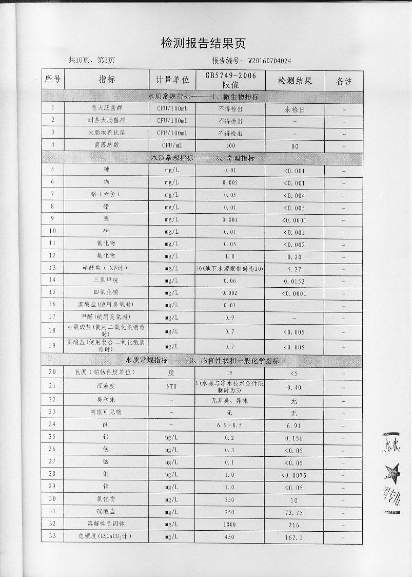 水質(zhì)報(bào)告