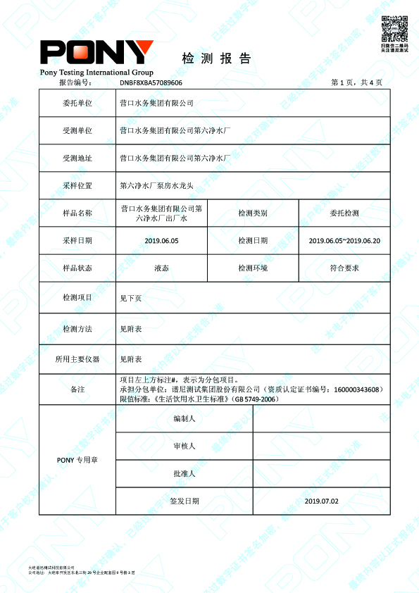 營(yíng)口水務(wù)集團(tuán)有限公司