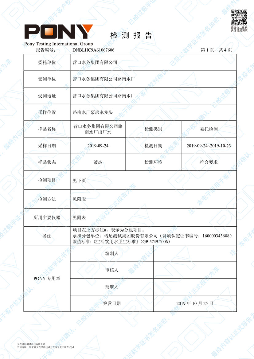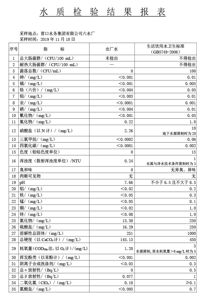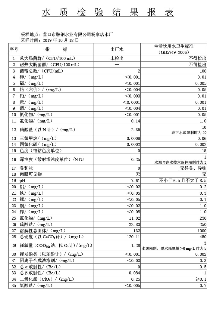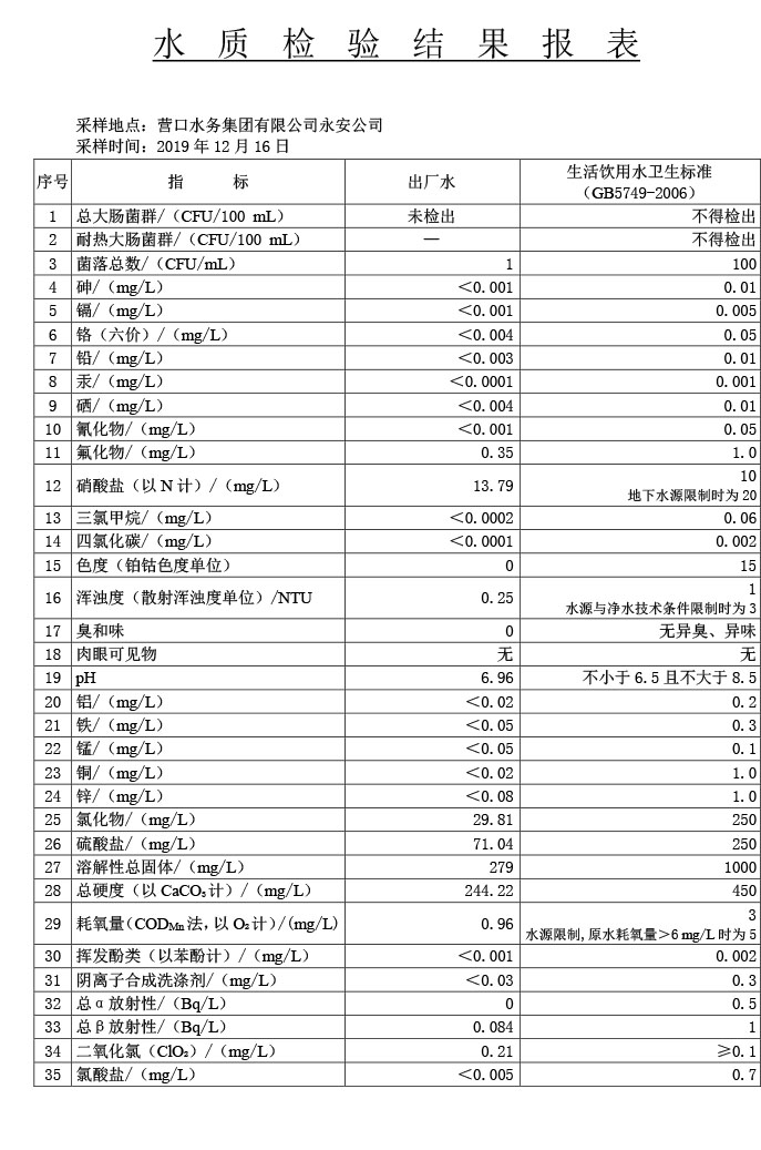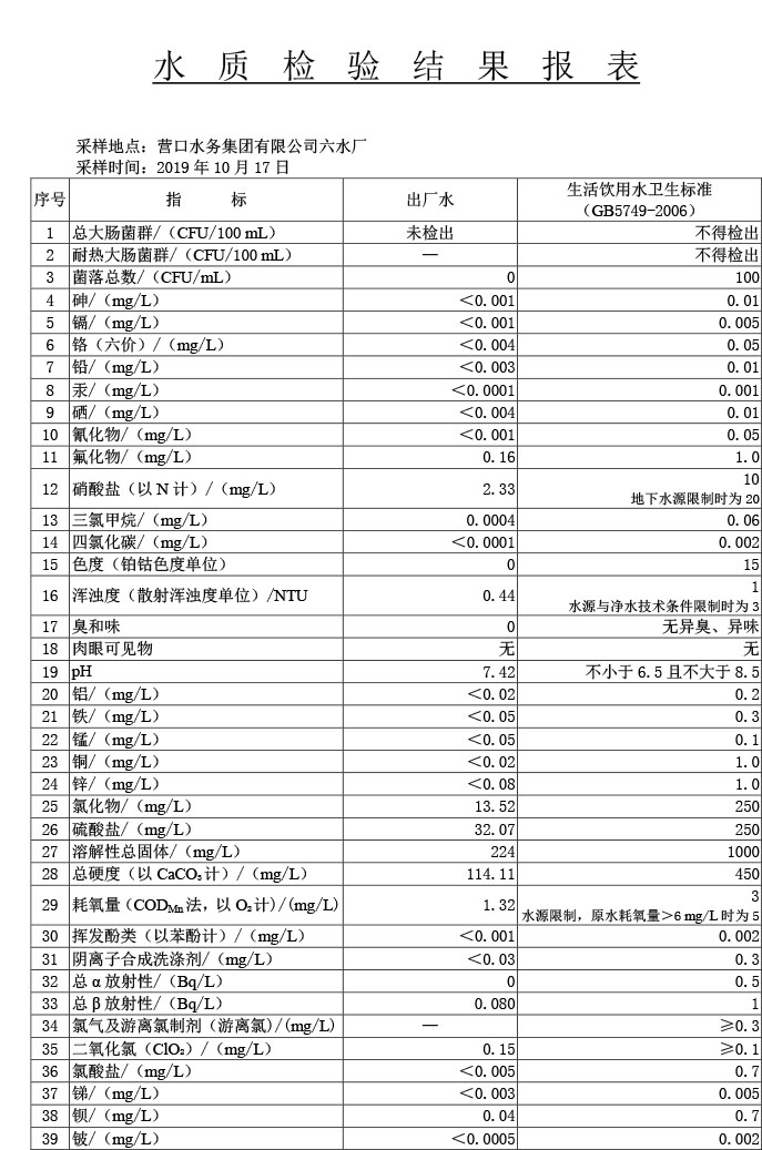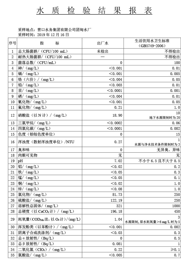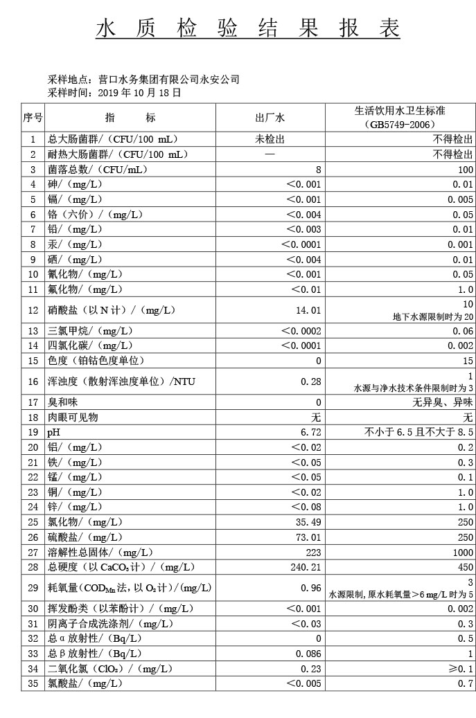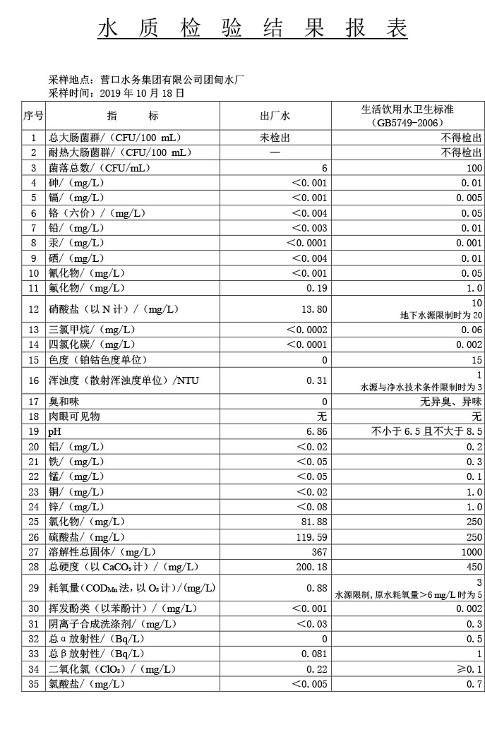 水質(zhì)報告