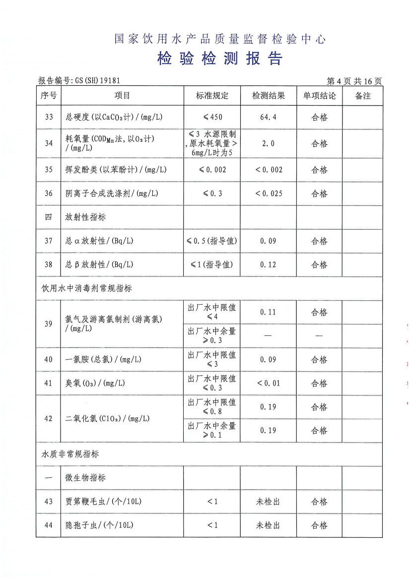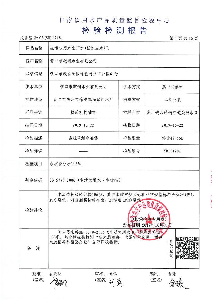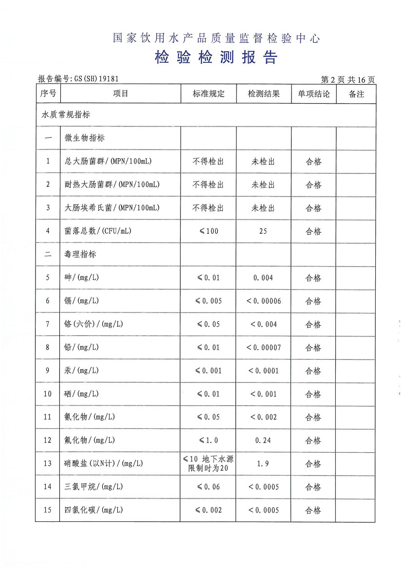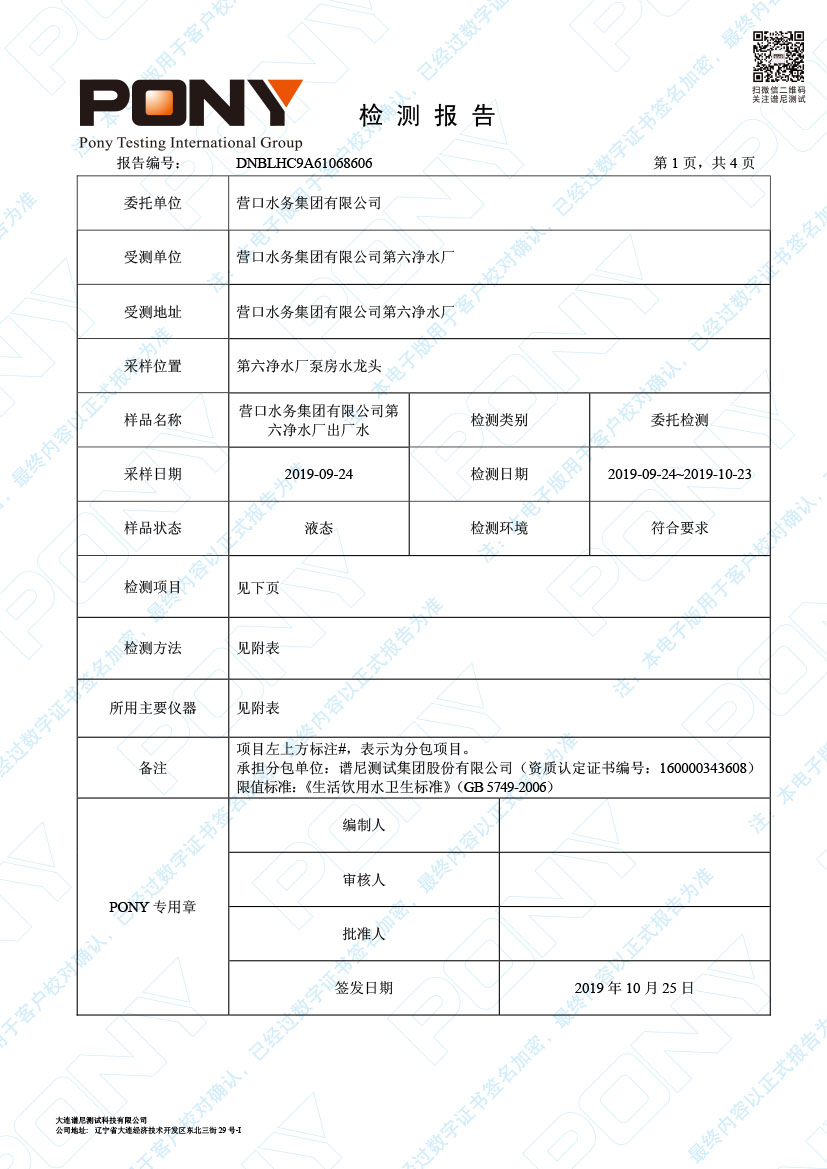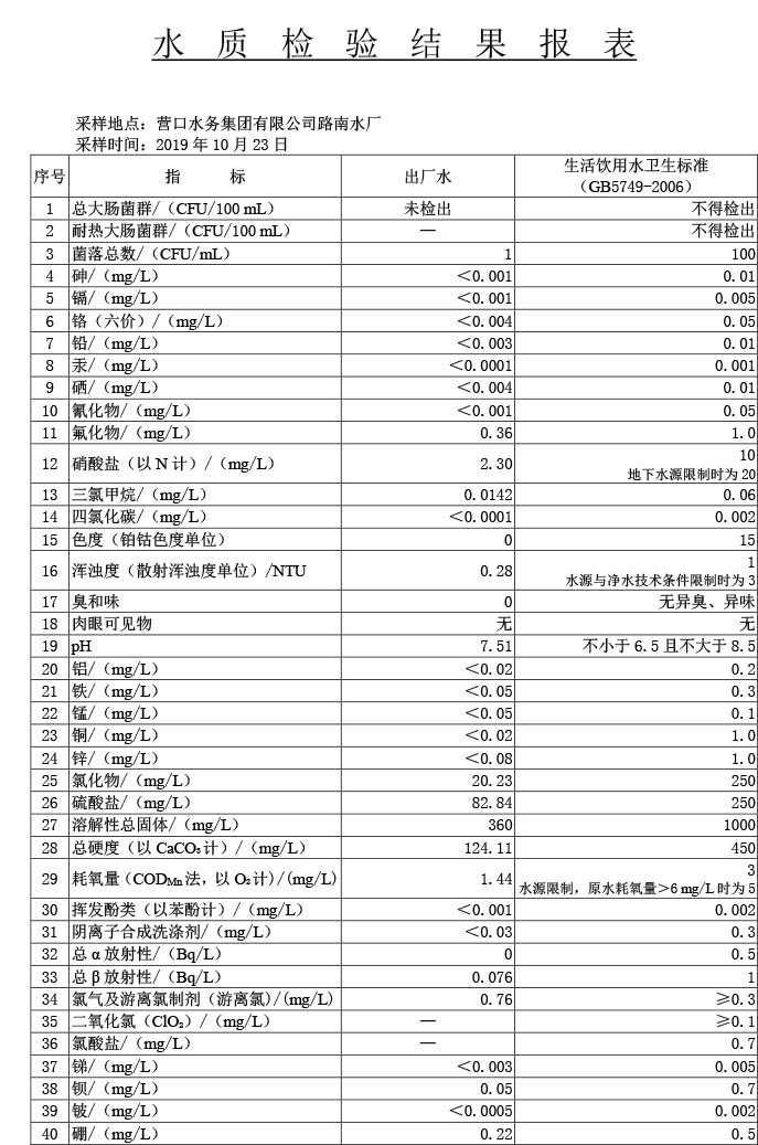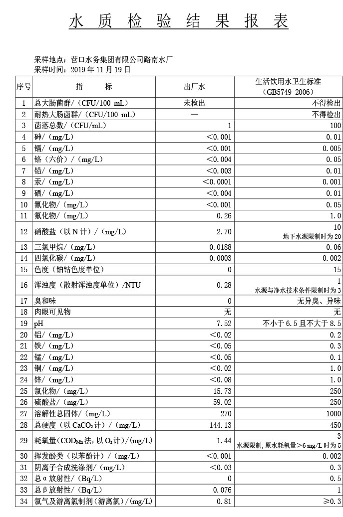 水質(zhì)報告