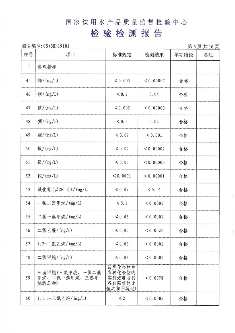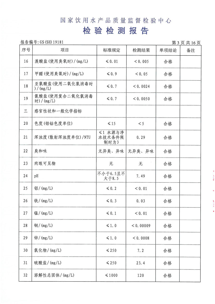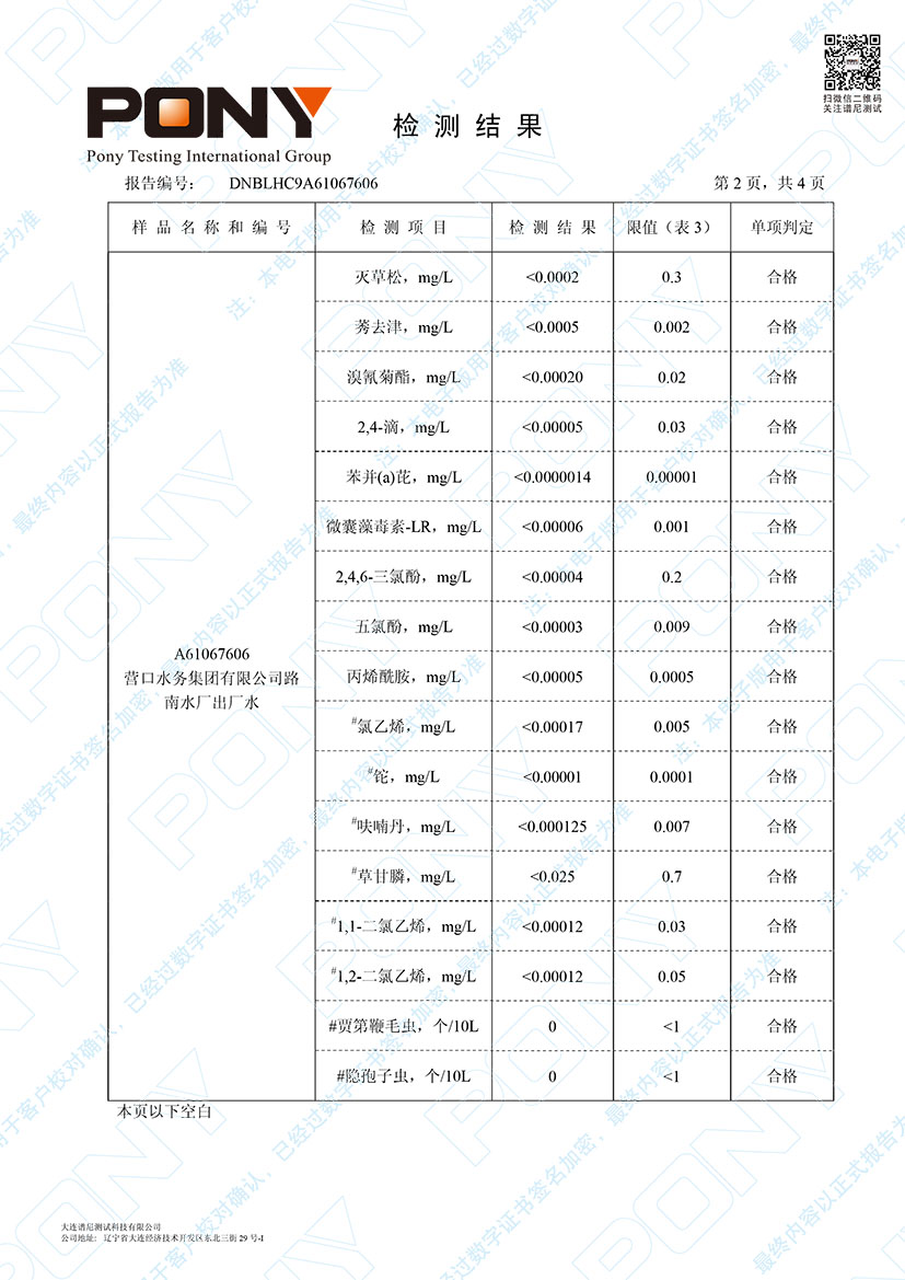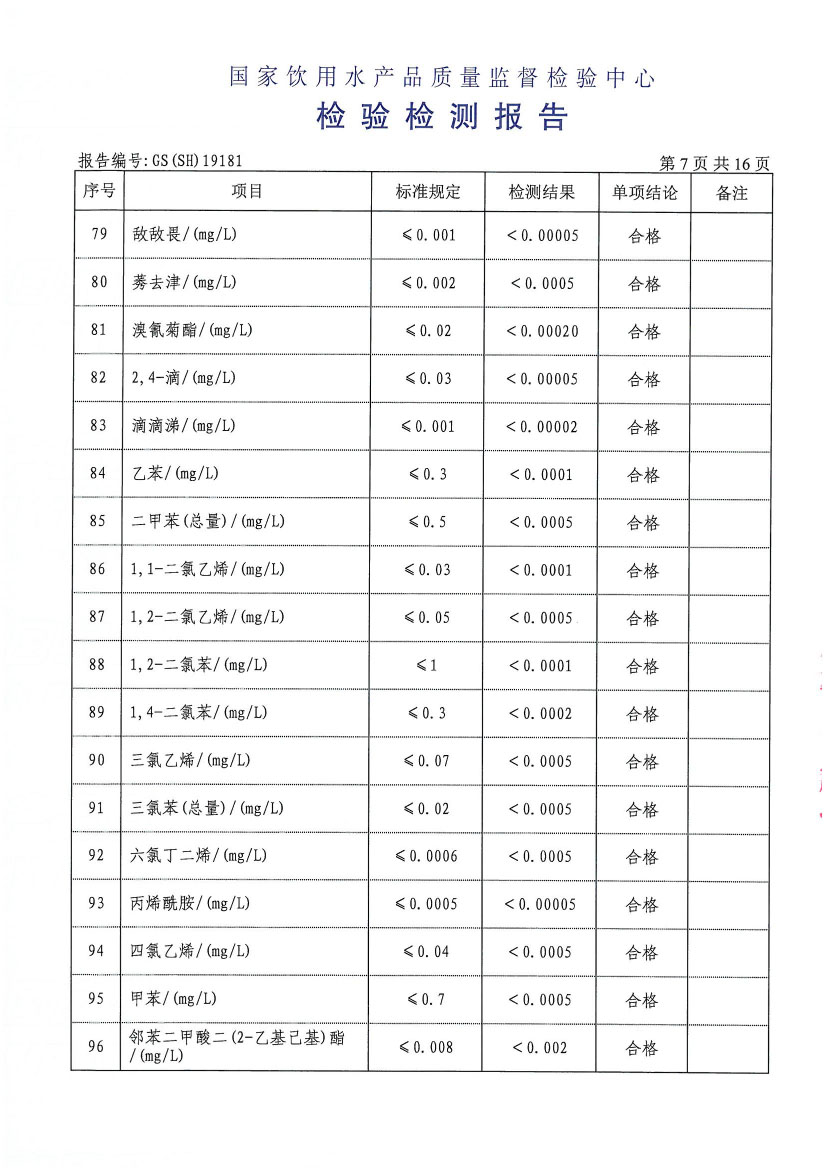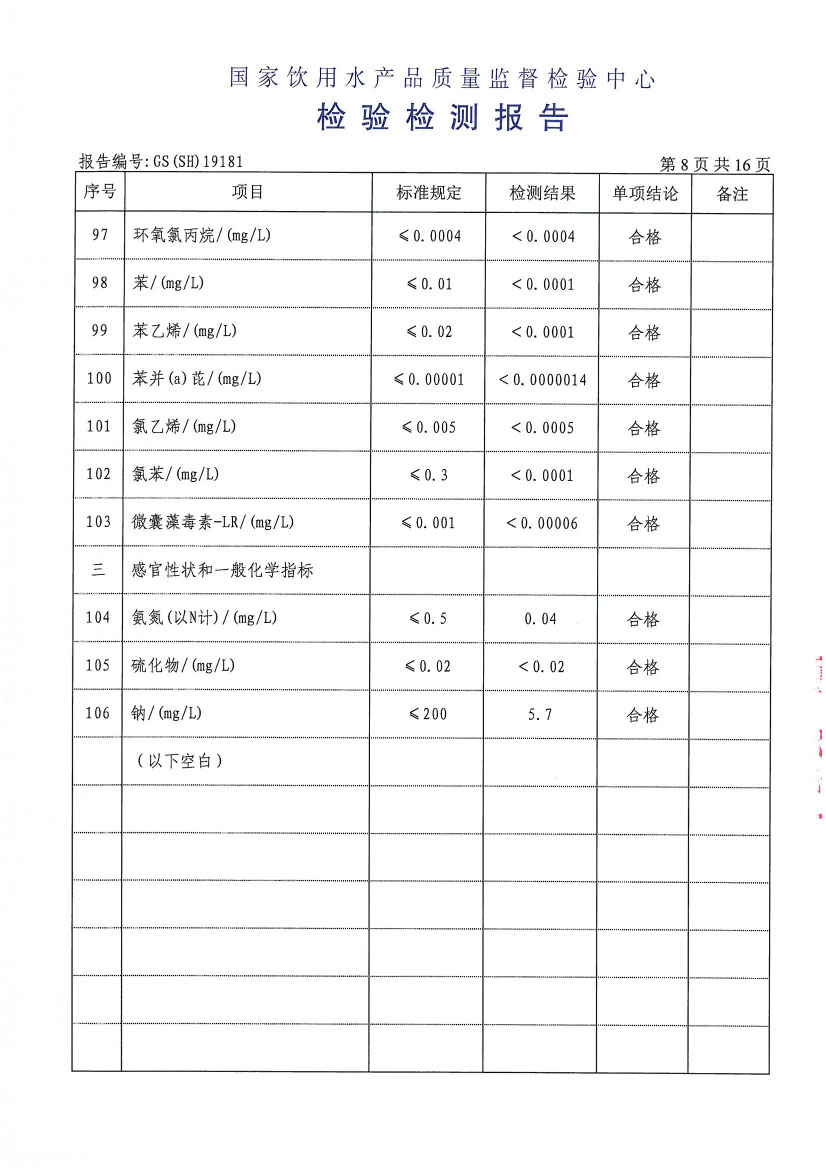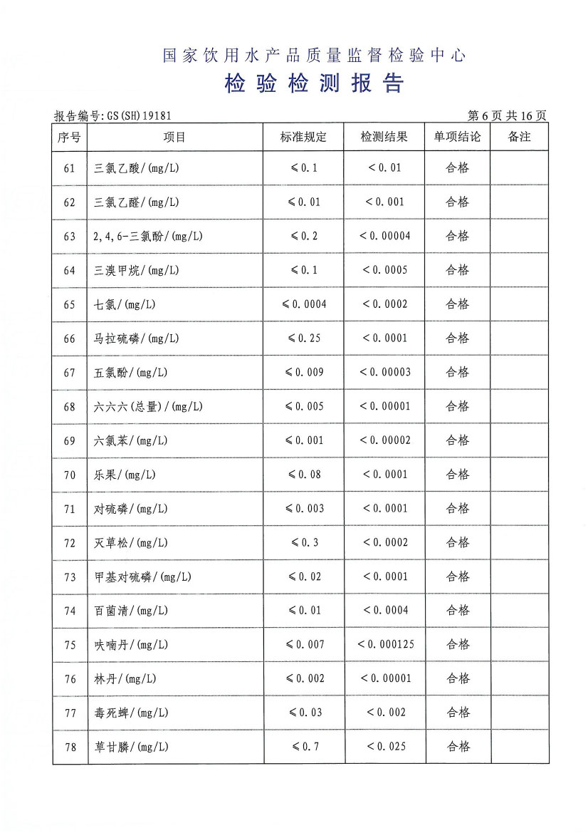 水質(zhì)報告